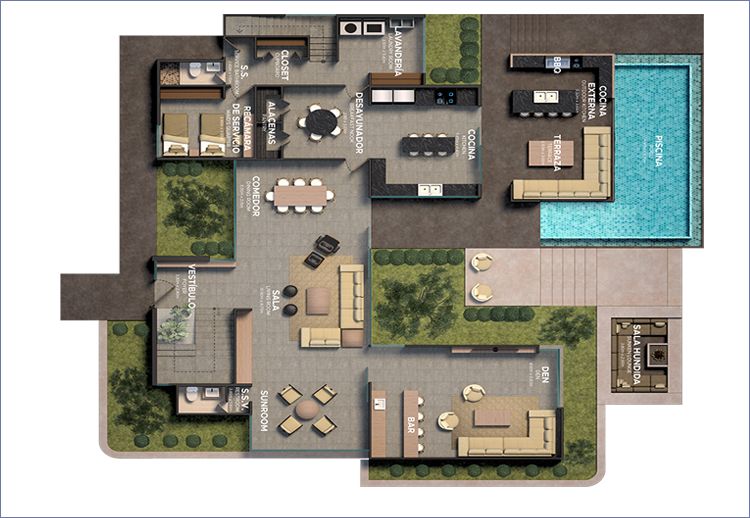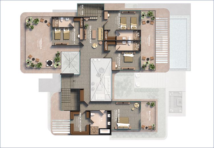 The images and renders contained herein are an artistic representation of the draftsman of the project Hill Riidge, therefore the material specifications, design details, colors and ;interior areas are subject to modification. For more information, request the description of finishes from your commercial advisor in the Sales Room of the project Hill Riidge.