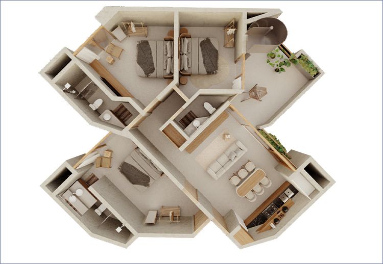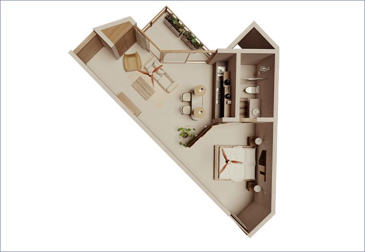 The images and renders contained herein are an artistic representation of the draftsman of the project TOK, therefore the material specifications, design details, colors and ;interior areas are subject to modification. For more information, request the description of finishes from your commercial advisor in the Sales Room of the project TOK.