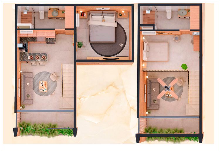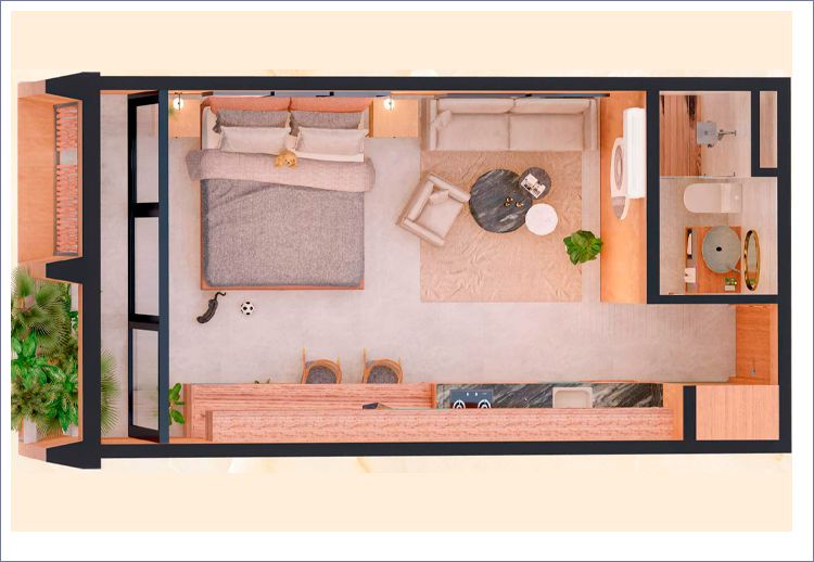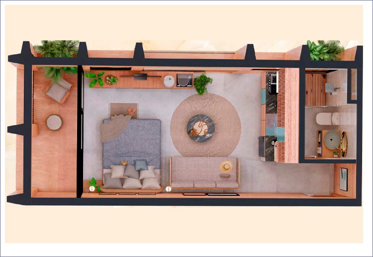 The specifications, renders and dimensions published here are proposals designed by the developer of the project Kabax. The promoter reserves the right to modify, withdraw any of them at his own discretion. discretion and without prior notice. All dimensions and plans are approximate and are subject to change without notice by Kabax.