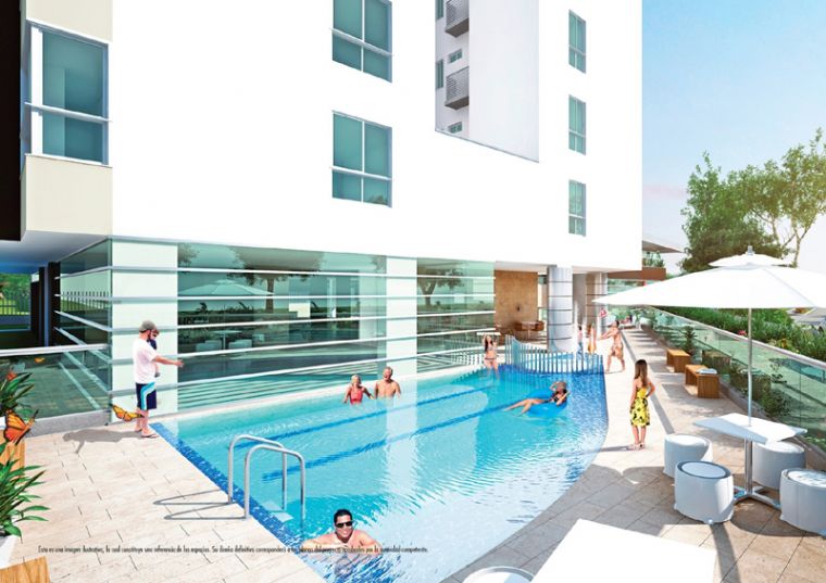 • 2 ascensores por torre • Lobby • Zona de juegos infantiles • Piscina recreativa para adultos y niños • Salón social • Sky Club en el piso 17 de la torre 3 • Baño turco • Jacuzzy • Gimnasio semidotado • Salón de juegos semidotado