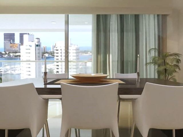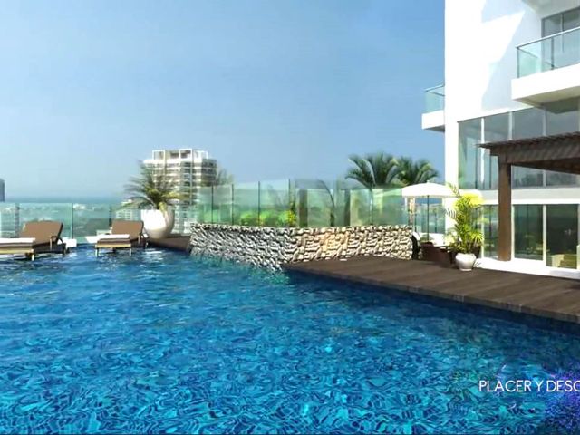 • Estructura en concreto de 4.000 PSI con sistema aporticado. • Hierro de refuerzo de 60.000 PSI. • Dos ascensores panorámicos de 8 pasajeros 80 mt/min o similar. • Planta eléctrica con cobertura total, menos aires acondicionados. • Tanques de reserva de agua para 2 días. • Cuatro niveles de parqueaderos: Un (1) parqueadero por apartamento, asignados por nomenclatura al momento de la legalización. • Espacio para oficina de administración. • Entrada al edificio con lobby a doble altura, portería, recibo; los pisos de la recepción son en mármol crema marfil o similar. • Pintura fachada con Pintura acrílica. • Área social con vista hacia la Bahía de Cartagena con piscina adultos, piscina niños, solarium, pérgolas, espacio para gimnasio, salón social con cocineta, baños.
