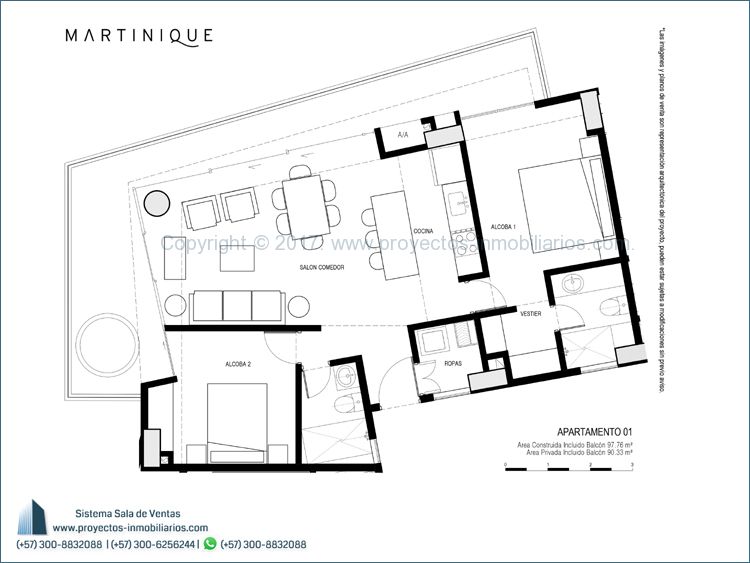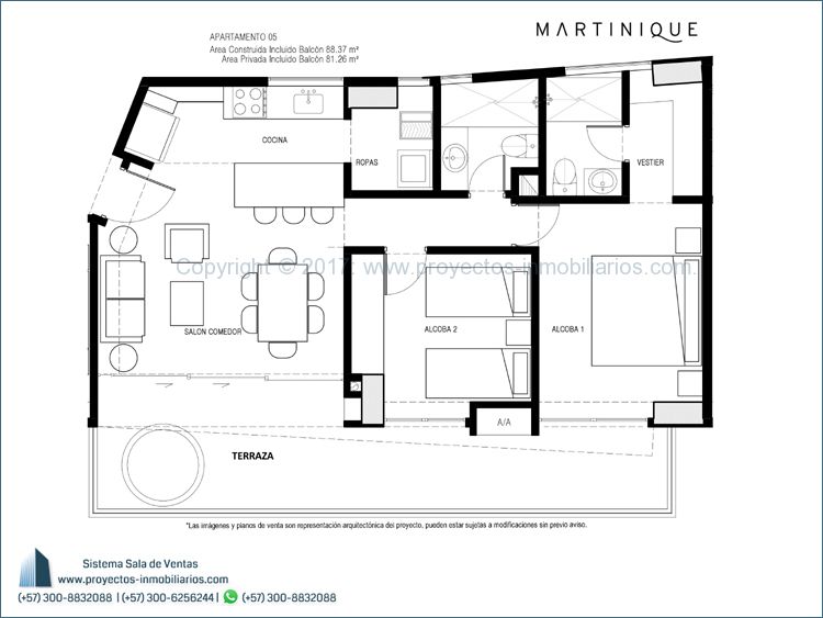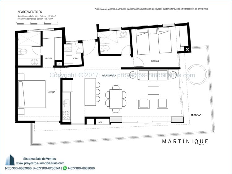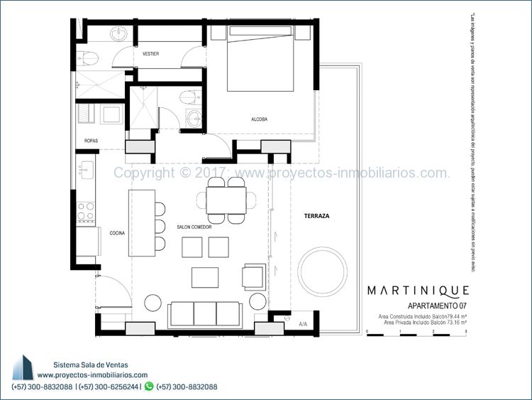 La información de los inmuebles aqui publicados para el proyecto Martinique y sus respectivos diseños, precios y áreas privadas, pueden sufrir modificaciones como consecuencia de disposiciones u ordenes de las autoridades públicas y urbanisticas competentes, o como consecuencia de caso fortuito o fueza mayor que afecten el normal desarrollo del proyecto Martinique.