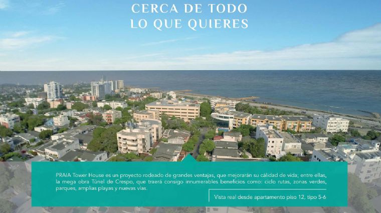 Los inmuebles aqui publicados para el proyecto Praia y sus respectivos diseños, precios y áreas privadas, pueden sufrir modificaciones como consecuencia de disposiciones u ordenes de las autoridades públicas y urbanisticas competentes, o como consecuencia de caso fortuito o fueza mayor que afecten el normal desarrollo del proyecto Praia.