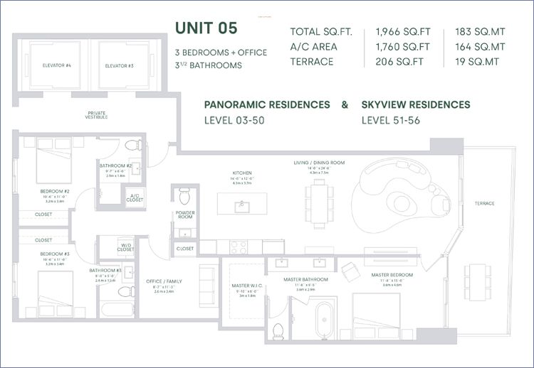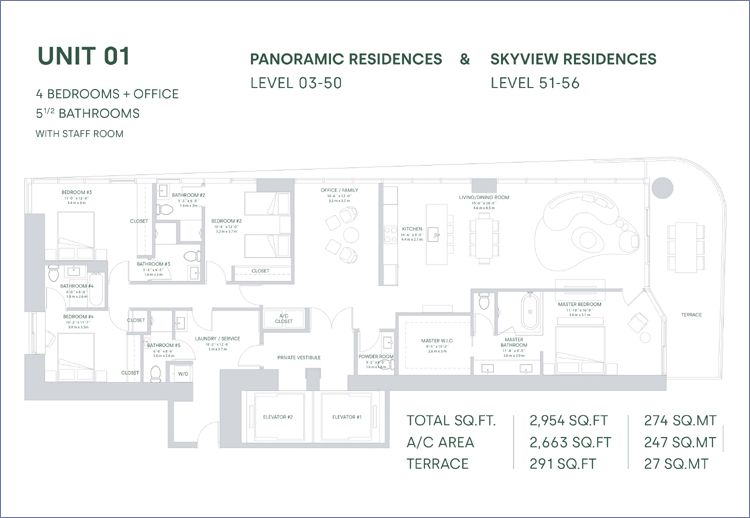 ● Residencias Panorámicas - pisos 3 al 50 con vistas desde las alcobas