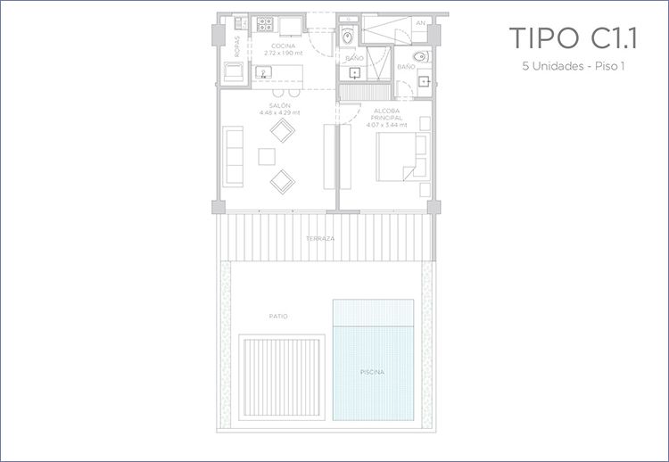 Este proyecto esta ya terminado con algunas reventas, es para inversion, y es de uso residencial o turístico para la oferta de rentas cortas a través de plataformas digitales como airbnb o booking