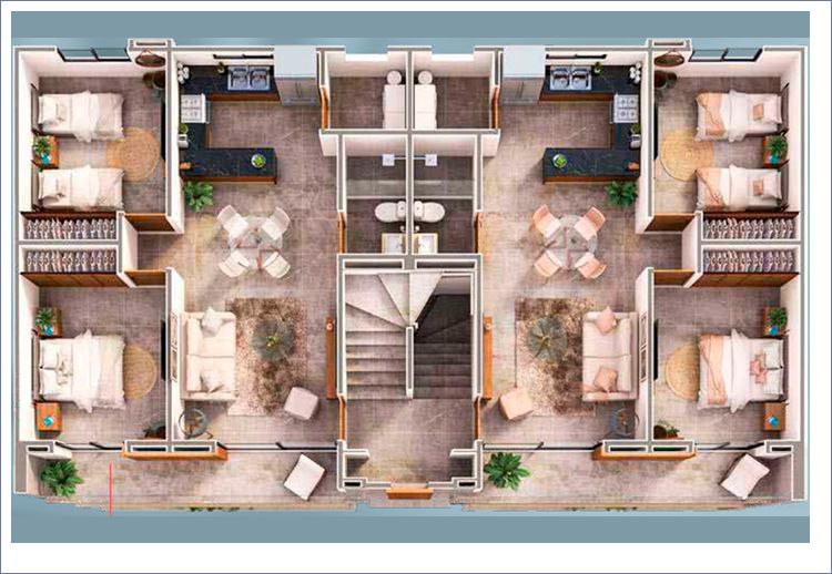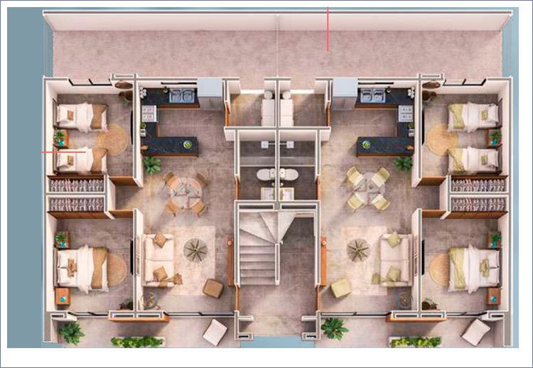 Las imagenes y renders aqui contenidos son una representación artística del dibujante del proyecto Quinta Maretta 2, por lo tanto las especificaciones de materiales, los detalles de diseño, colores y áreas interiores están sujetas a modificación. Para mayor información solicite la descripción de acabados a su asesor comercial en la Sala de Ventas del proyecto Quinta Maretta 2.