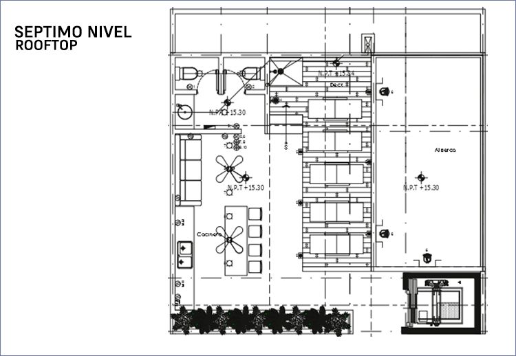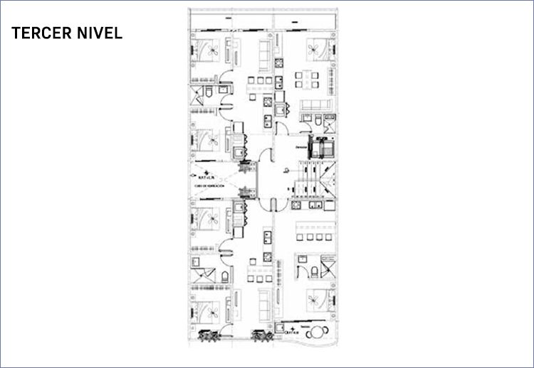 SERENATA Cuenta con 21 unidades, entre estudios, departamentos de 2 recámaras, distribuidos en siete niveles y un roof top. Además, tiene estacionamiento en el sótano y acabados de primera que realzan la sencillez y la calidez con que están creados los espacios.