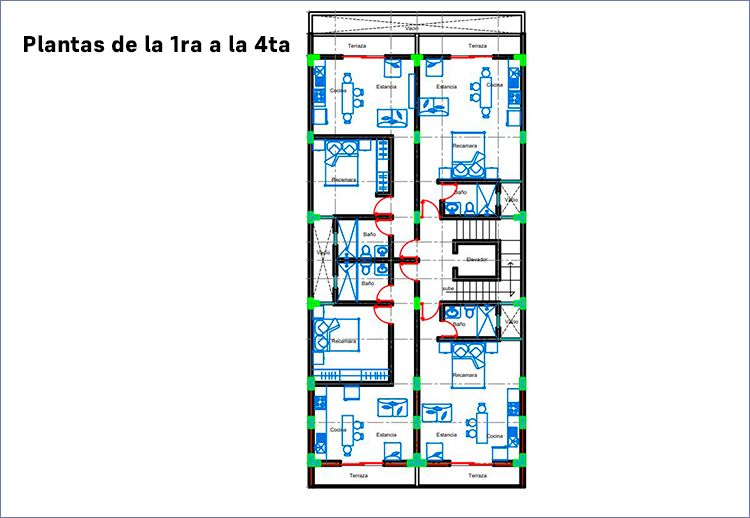 El proyecto cuenta con 5 Pisos, 19 departamentos de 44m2 a 46m2 espacios minimalistas.
