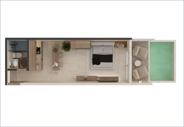 Las imagenes aqui contenidas son una representación meramente ilustrativa del concepto arquitectónico de proyecto Ocean Tulum, y no deben entenderse como una reproducción exacta y detallada de los inmuebles aqui publicados. Los precios ofrecidos y las áreas de los inmuebles, están sujetos a variacion según las condiciones del mercado, la disponibilidad de unidades, o los cambios que puedan darse en el diseño del proyecto Ocean Tulum.