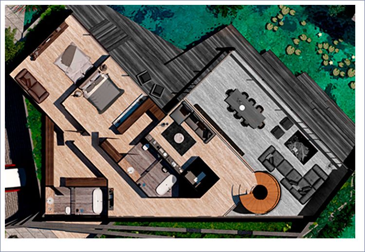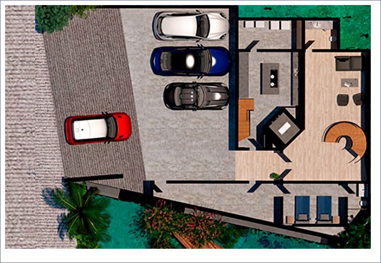 Las imagenes y renders aqui contenidos son una representación artística del dibujante del proyecto Mansions Shark, por lo tanto las especificaciones de materiales, los detalles de diseño, colores y áreas interiores están sujetas a modificación. Para mayor información solicite la descripción de acabados a su asesor comercial en la Sala de Ventas del proyecto Mansions Shark.