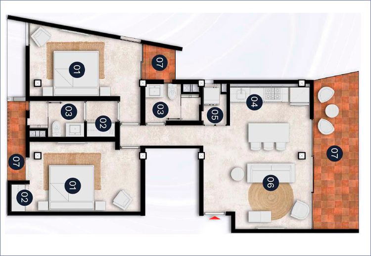 51 lujosos departamentos y 5 bungalows distribuidos en 2 torres, todos con terrazas con espectaculares vistas al mar o a la exuberante selva que rodea de vegetación al destino. Sumergirte en las piscinas infinitas ubicadas en el rooftop de cada torrete harán sentir que has llegado al cielo, en la tierra.