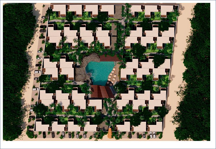Ātman Village está integrado por 51 villas privadas manejadas como hotel de lujo. Seguridad 24/7, acceso controlado, cada una con su piscina privada y terraza propia, espacio de estacionamiento propio y amenidades únicas como el lounge de cueva y el jacuzzi escondido.