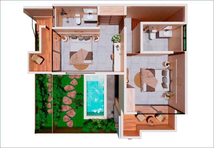Ātman Village con su arquitectura y diseño moderno funcional hace fácil que tu propiedad trabaje para ti. Haz de la selva maya tu jardín y disfruta del estilo de vida de Tulum.