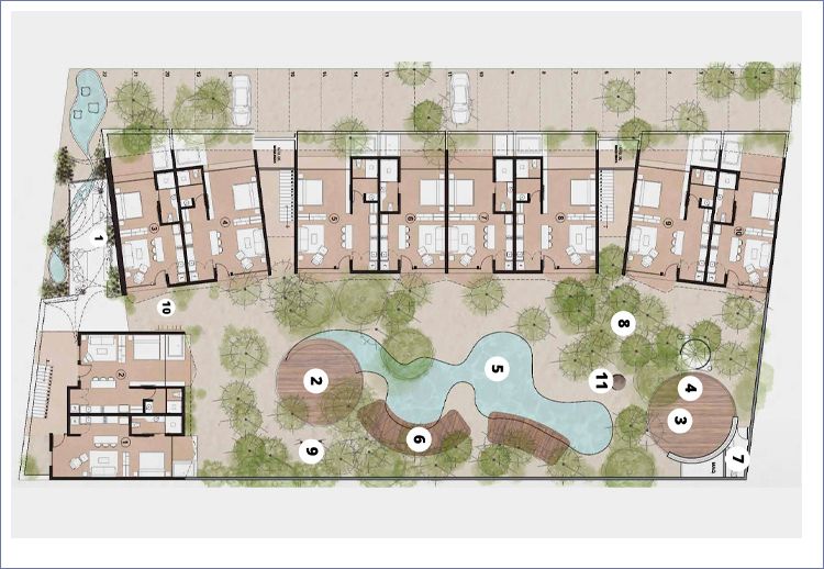 Un espacio de recreación que se fusiona con el entorno natural selvático, otorgando una vida relajada y bohemia.