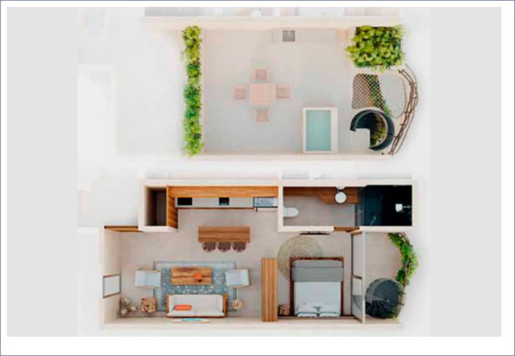 Este proyecto esta ya terminado, es para inversión y es de uso turístico para la oferta de rentas cortas a través de plataformas digitales como airbnb o booking