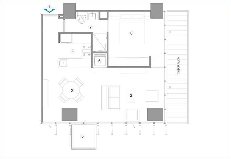 Las imagenes y renders aqui contenidos son una representación artística del dibujante del proyecto Blum, por lo tanto las especificaciones de materiales, los detalles de diseño, colores y áreas interiores están sujetas a modificación. Para mayor información solicite la descripción de acabados a su asesor comercial en la Sala de Ventas del proyecto Blum.