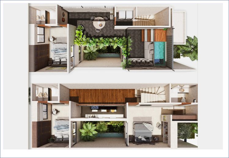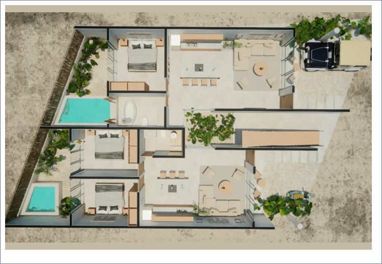 K'AAX tiene una variedad de opciones que incluyen Unidades de jardín de 1 y 2 recámaras, unidades de lujo de 1 y 2 recámaras y penthouses de dos pisos de 2 y 3 recámaras