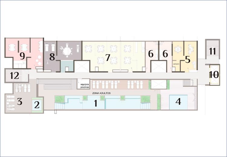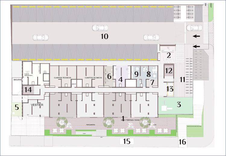 ● Juegos infantiles ● Pet Spa ● Piscina adultos ● Jacuzzi ● Solarium ● Piscina niños ● Salón niños ● Salón social ● Gimnasio ● Cowork