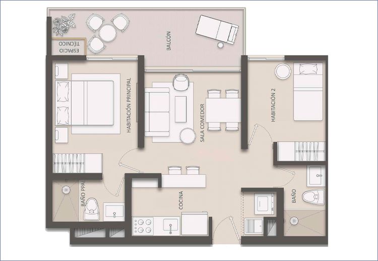 Las imagenes aqui contenidas son una representación artística del dibujante del proyecto Dunna, por lo tanto los detalles de diseño, colores, áreas interiores y especificaciones de materiales están sujetas a modificación. Para más información solicite la descripción de acabados a su asesor comercial del proyecto Dunna.