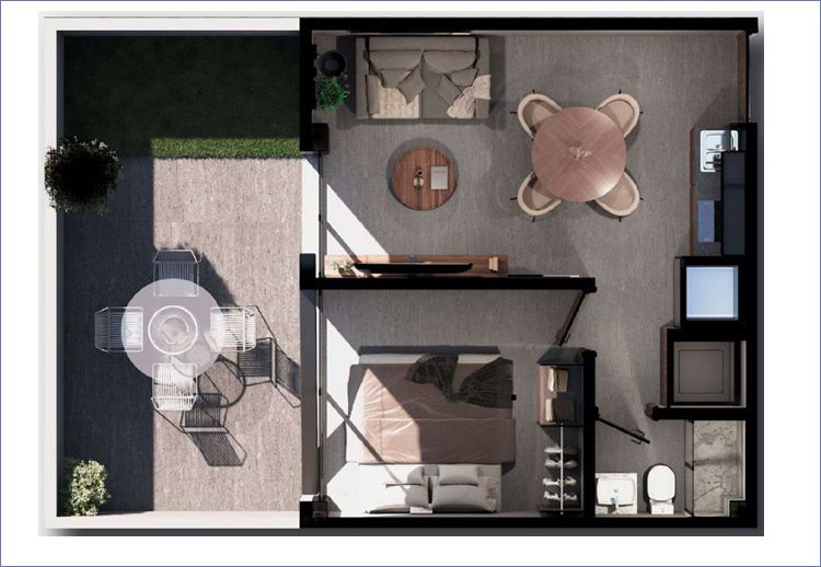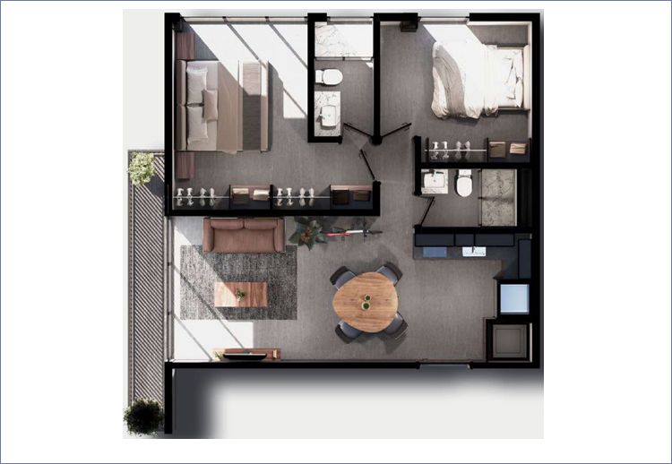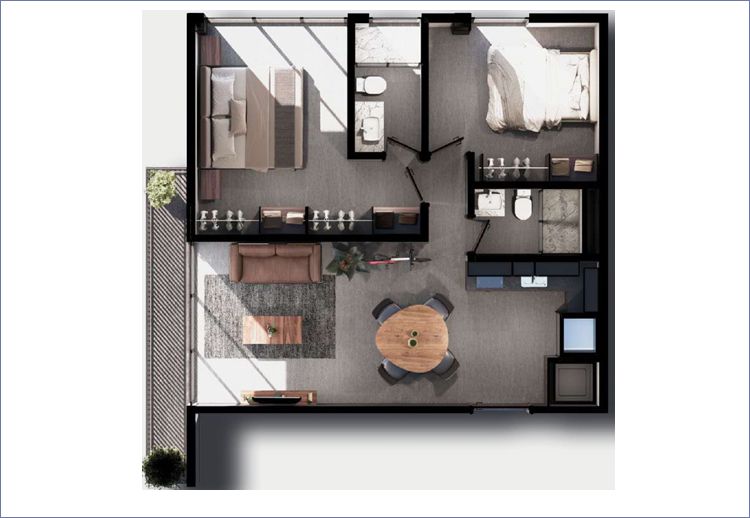 Las imagenes y renders aqui contenidos son una representación artística del dibujante del proyecto Rodo Ontario, por lo tanto las especificaciones de materiales, los detalles de diseño, colores y áreas interiores están sujetas a modificación. Para mayor información solicite la descripción de acabados a su asesor comercial en la Sala de Ventas del proyecto Rodo Ontario.